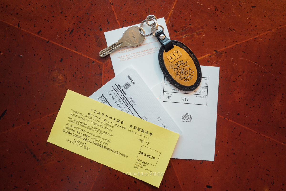 在check in 時,除了會拿到房間鑰匙、早餐券,還會拿到一張豪斯登堡溫泉大浴場的優惠券。憑此券,並付150日圓的入湯稅,就可以使用大浴場。查了一下官網,從今年10月1日起,此特典更改成只提供給入住歐洲飯店(也就是我這次入住的)的才能享有唷!