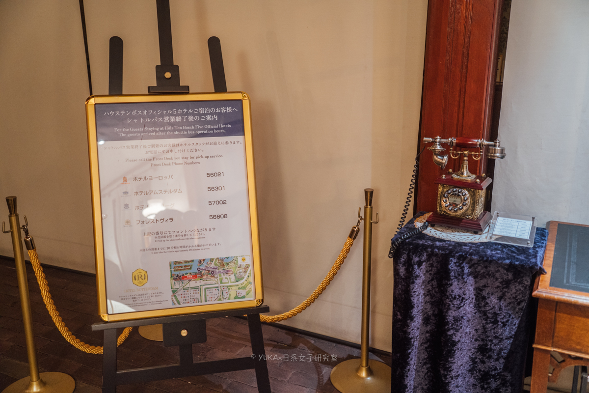 由於飯店離一般入口處較遠,如果閉園前剛好在附近,就可以從港口城的門離開回飯店。但若跟我一樣,閉園時間已過還在一般入口處的便利商店買東西,導致無法回去飯店,也不用擔心~直接前往「飯店行李寄放處」,裡面有一台復古轉盤電話,直接撥打飯店的指定號碼,飯店就會派專車來接送!(當時差點以為要露宿街頭….好險)