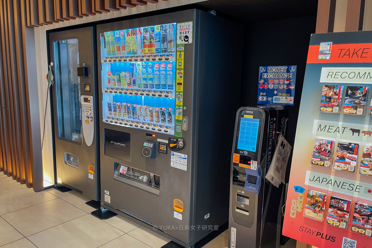 牙刷、梳子、刮鬍刀等備品可於大廳自由拿取,販賣機、外幣兌換機、微波爐也都位於大廳。