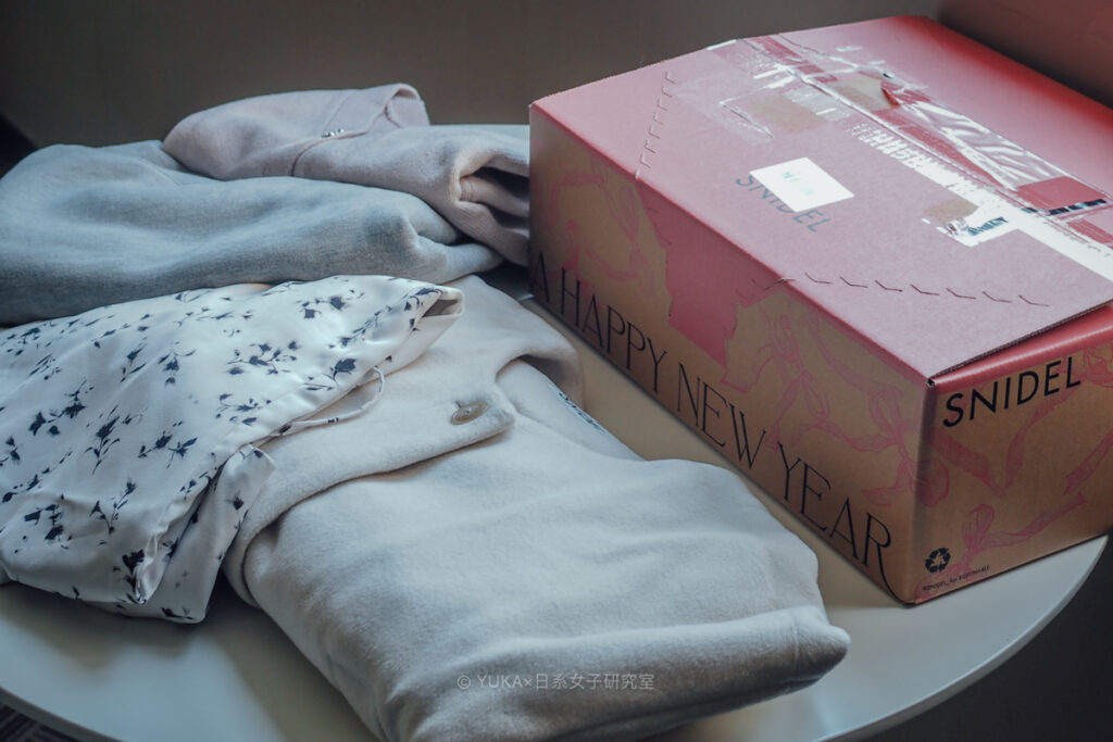 購買的SNIDEL福袋皆為不公開內容的商品,因此在購買前我去Youtube上看了歷年來的開箱分享來決定這個風格是不是我會喜歡的。而這次的福袋共有4件商品,包含大衣、洋裝、針織外套以及上衣,金額為15000日圓。