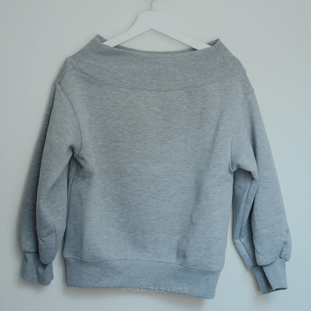 內刷毛的灰色長袖上衣,左袖口有SNIDEL的LOGO。最特別的是此版型可平口也可露單肩,是較少見的衣服款式!