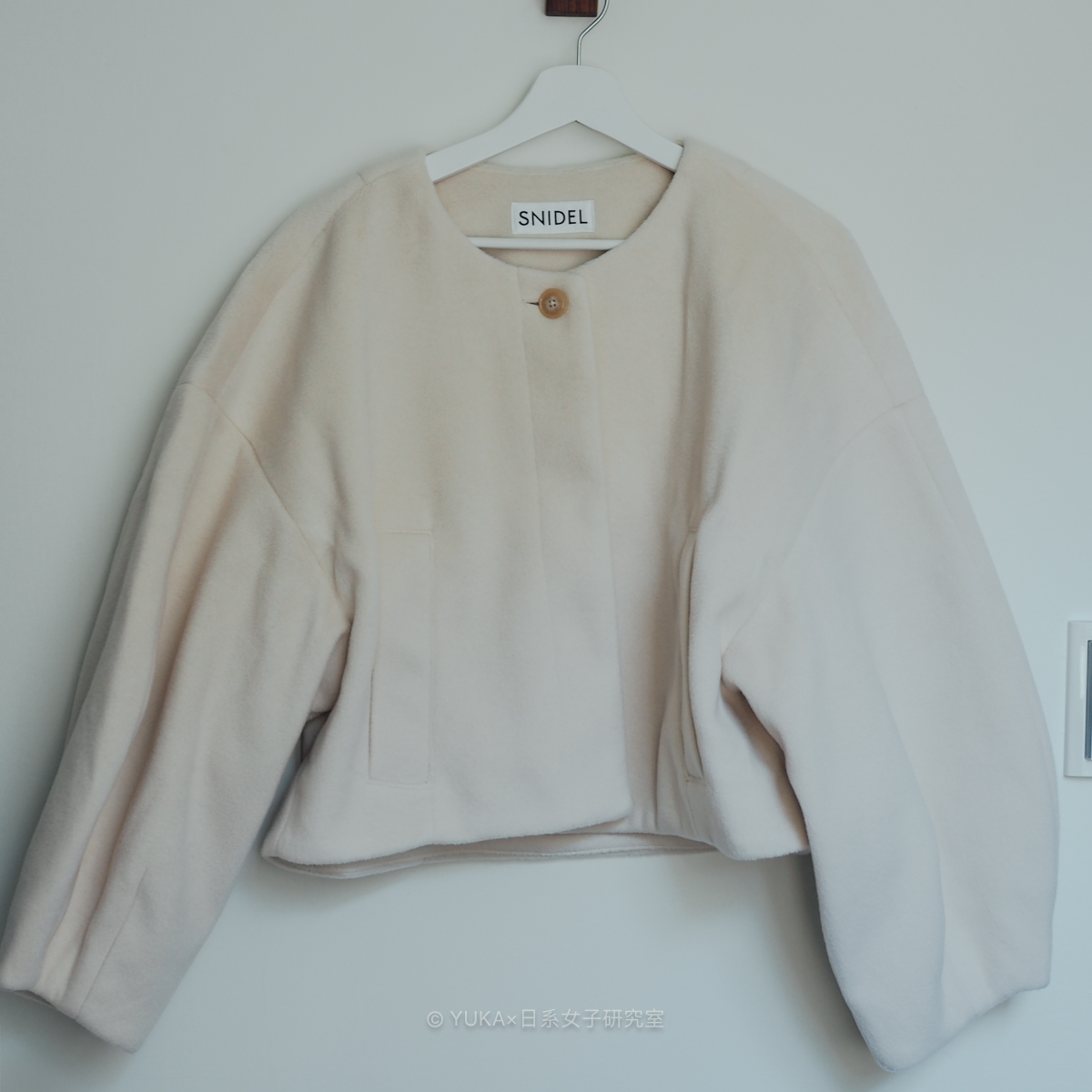 圓領的米白色大衣,還是短版型好可愛!蓬蓬的袖子設計,裡面穿厚衣服都沒問題,活動也方便。