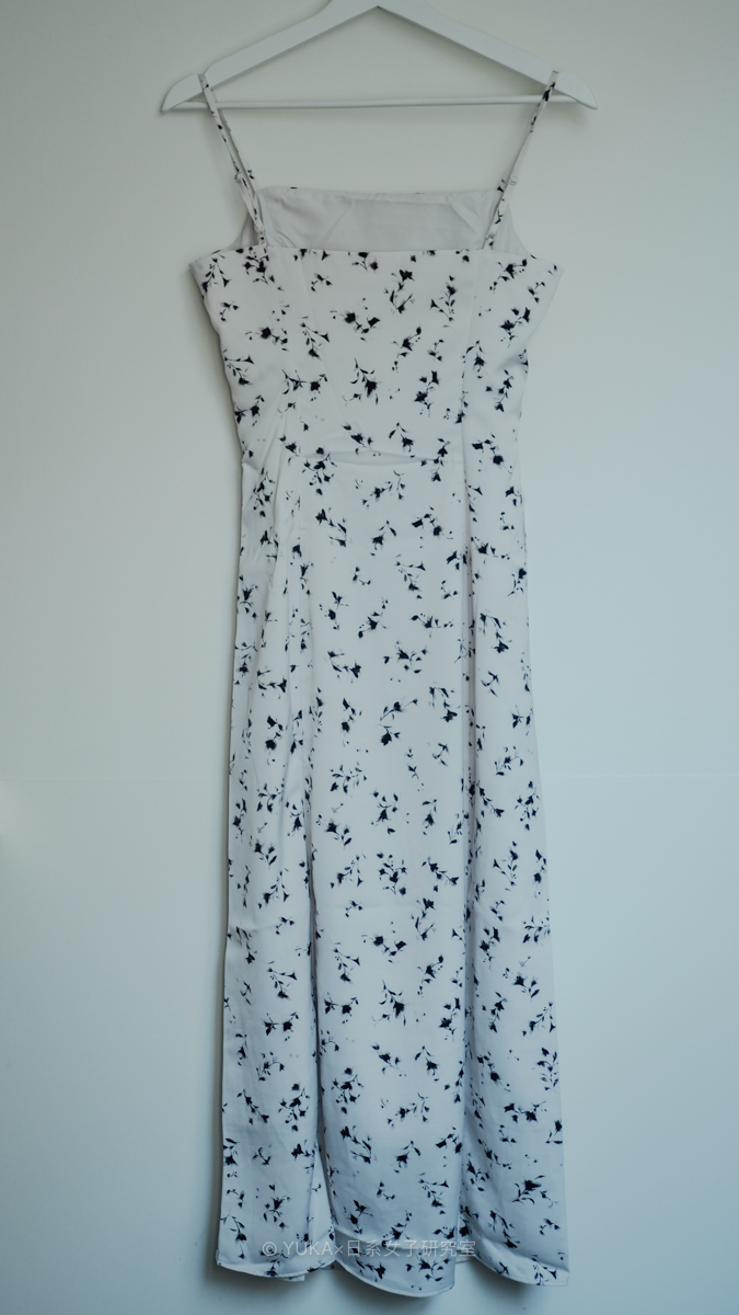 氣質的白色碎花洋裝,完全是約會必勝服!這件洋裝較為貼身,雖然為Free Size,但比較適合纖瘦的身材穿著(側邊有拉鍊,但我差點拉不上去…汗),後面的綁帶設計更能顯腰身。